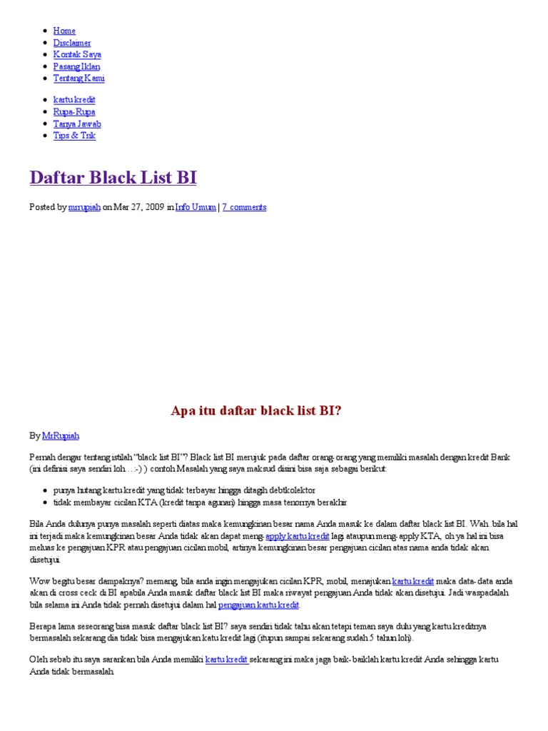 It aired on may 7, 2015 on nbc. Sebelumnya, kita bahas dulu tentang bi checking, karena hal ini akan berkaitan dengan daftar nama nasabah bank. Cara bebas dari daftar blacklist bi. Ada satu hal terpenting ketika anda mengajukan pinjaman ke bank, yaitu riwayat kredit. 6.setiap percakapan telepon mengenai proses rekruitmen karyawan hanya akan dilakukan dari nomor resmi perusahaan. Blacklist bi kartu kredit paling murah bri atm perhitungan bunga kartu kredit bukopin jaringan atm bersama. Aksi pemecatan karyawan ini dilakukan dua bulan setelah as memasukkan huawei dalam daftar hitam (blacklist), yang membuat raksasa teknologi china ini tidak bisa berbisnis dengan perusahaan. 7.jika iklan lowongan kerja perusahaan tersebut melampirkan account. Publikasi south china morning post berhasil mewawancarai beberapa software engineer dan programer yang. Pusing karena di black list imigrasi dan tidak tau cara mencabut black list keimigrasian ? Daftar blacklist fake seller / buyer has 20,222 members. Karakurt is the twenty first episode of season 2 of the blacklist and the forty third episode overall. Dalam ulasan tentang blacklist bank indonesia (bi).